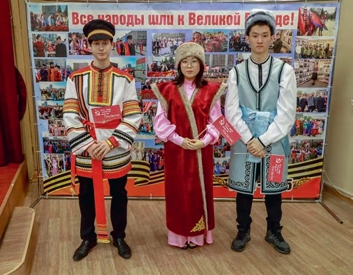 Рассказы о подвигах Героев Советского Союза разных национальностей представляли и молодые активисты в соответствующих национальных костюмах, символизируя единство наших предков перед страшными событиями той войны. Примечательно, что о трижды Герое Советского Союза Александре Покрышкине говорил Тимофей Филимонов – студент Новосибирского технического колледжа, носящего имя нашего прославленного земляка.