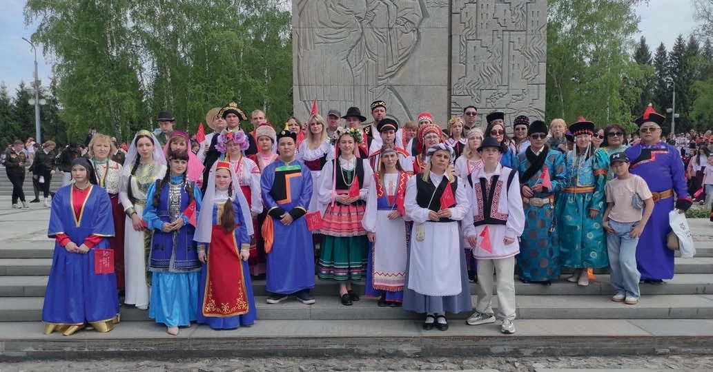 9 мая 2025 года в возложении венков и цветов на Монументе Славы в составе многонациональной колонны с лозунгом «ВСЕ НАРОДЫ ШЛИ К ВЕЛИКОЙ ПОБЕДЕ» приняли участие более 300 человек. Под флагом России и Знаменем Победы к Вечному огню прошли руководители и представители национально-культурных организаций, автономий и землячеств в костюмах своих народов. Городской межнациональный центр подготовил группу молодых активистов, которые включились в шествие в национальных костюмах, изготовленных в рамках гранта Министерства региональной политики Новосибирской области. Колонна, ставшая уже традиционным украшением праздничных мероприятий 9 Мая, в 2025 году получила обновление – в рамках грантового проекта были изготовлены 40 новых национальных костюмов двадцати народов, проживающих в регионе.