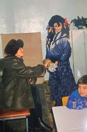 С Валентиной мы дружим и по сей день! Мы поддерживали самые сумасбродные идеи друг друга. То в маслобойке на игре по Руси появилась пачка масла, то из кустов выбежал кот Базилио с лягушкой в металлической кружке… Я обожаю колядки. Мне очень нравилось быть обаятельной Кикиморой с конфетой счастья, порой дети помогали нечисти, а не Снегурочке. И со своими детьми мы ходили колядовать вместе с «Эфесом».